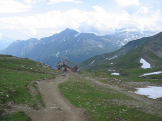 シャモニ・モンブラン(BUS)→サンジェルヴェ・ル・ファイエ(BUS)→ノートルダム・ドゥ・ラ・ゴルジュ[1210m](徒歩)→バルム小屋(徒歩)→ボンノムのコル[2479m](徒歩)→ボンノム小屋(泊)