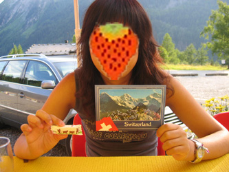 意外と早く着いたので、お土産屋を覗き不思議なチョコやハガキを買う。 夕食まで時間があったので1Fにある喫茶店でお茶をする。 夕食はボリューム満点のスイス料理。ポテトフライは細くてぐねぐねしていた。 それでも空いたお腹にはとても美味しくすっかり平らげて部屋に戻る。